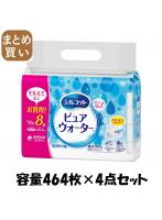 【まとめ買い】シルコットピュアウォーターウェットティッシュ詰替58枚×8個パック 容量464マイ×4点セットユニ・チャーム